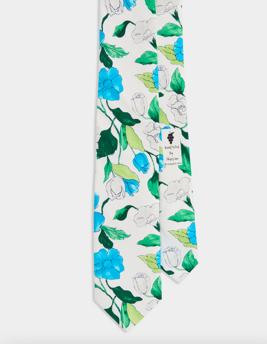 Flora Printed Pocket Square White Cap