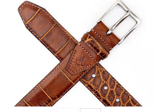 Perry Gator Grain Italian Leather Belt Chestnut