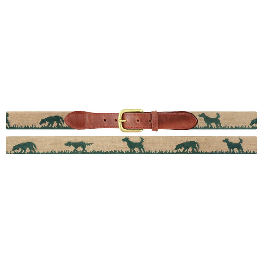 Hunting Dog Needlepoint Belt (Dk Khaki)