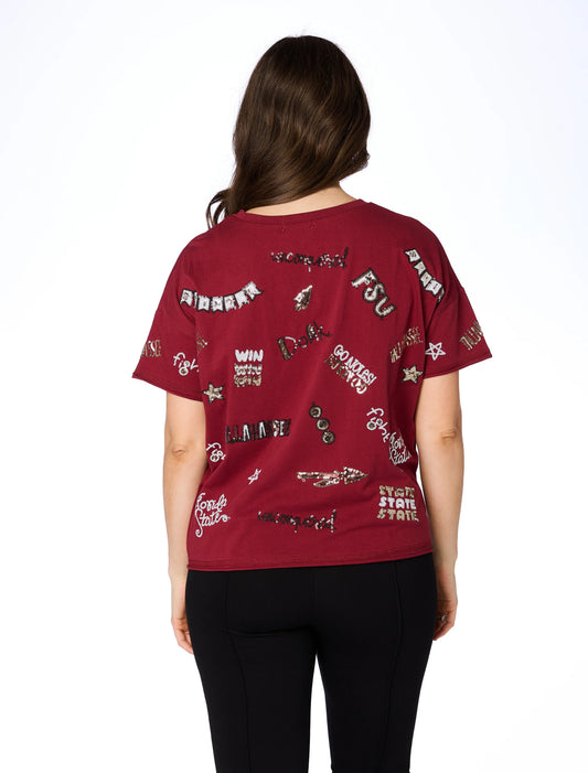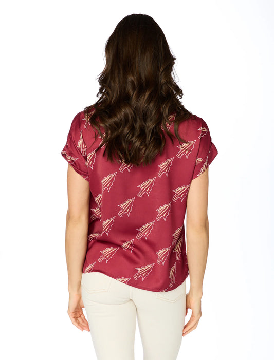 Ws FSU Spear Rolled Cuff Blouse Garnet