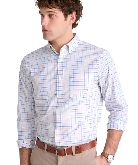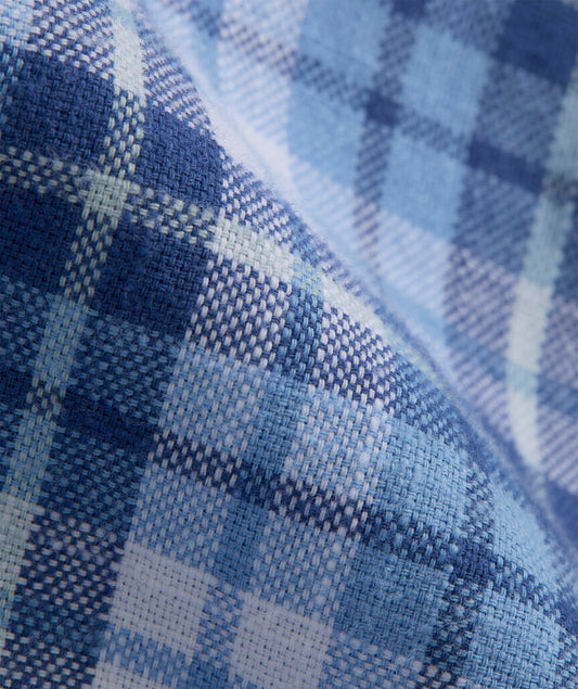 Moorings Tattersall Perf Cotton Shirt Peach/Cream