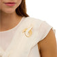 The Sandy Point Brooch offers a sleek and sophisticated design with a curved silhouette, crafted from elegant white rooster feathers. This unisex brooch features a sparkling cubic zirconia at the tip, adding just the right amount of refined shine. Perfect for any occasion, this versatile piece can be worn on a lapel, scarf, or collar, effortlessly elevating your look with natural beauty and understated luxury.