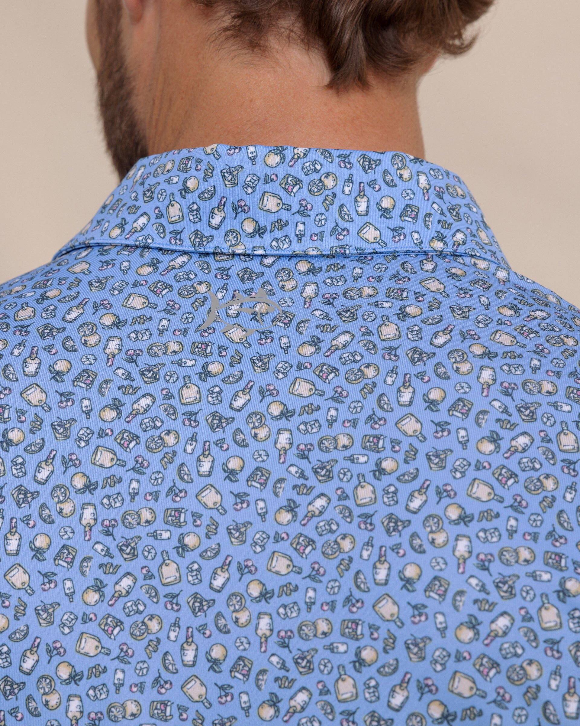 Experience a blend of style and performance with the Driver I'll Have an Old Fashioned Printed Polo. This polo features an all-over cocktail print, adding a refined twist to your wardrobe. Its stretch fabric ensures all-day comfort, while integrated wicking and UV protection keep you cool and collected.