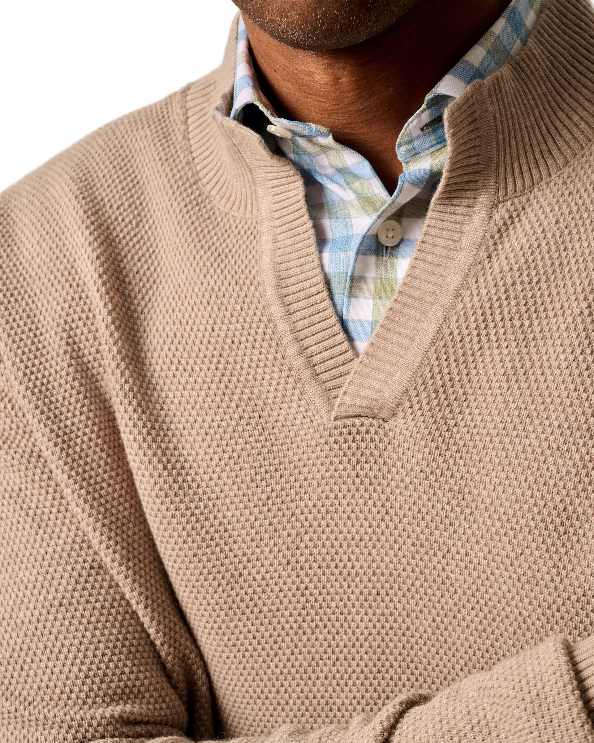 The Esteban is a versatile wardrobe essential. Its split v-neck and elevated collar make it the perfect layering piece, effortlessly complementing your favorite polos or button-down shirts.