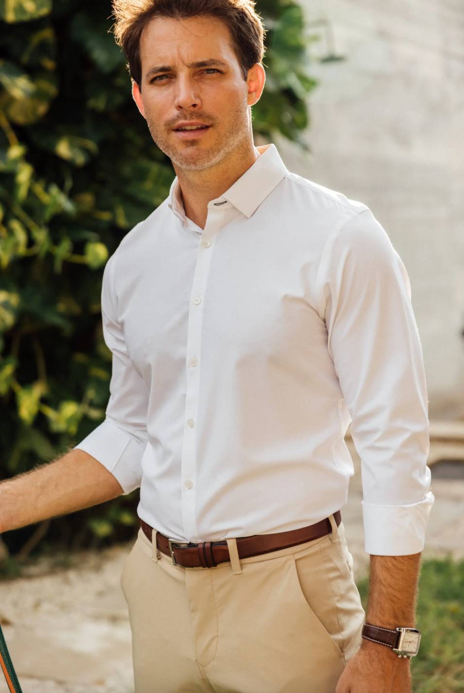 All the benefits of athletic wear, disguised as a dress shirt. Made from high quality performance fibers, our White Solid Leeward dress shirt creates a comfortable, easy to care for dress shirt that is lightweight with superior quick-dry and stretch properties.