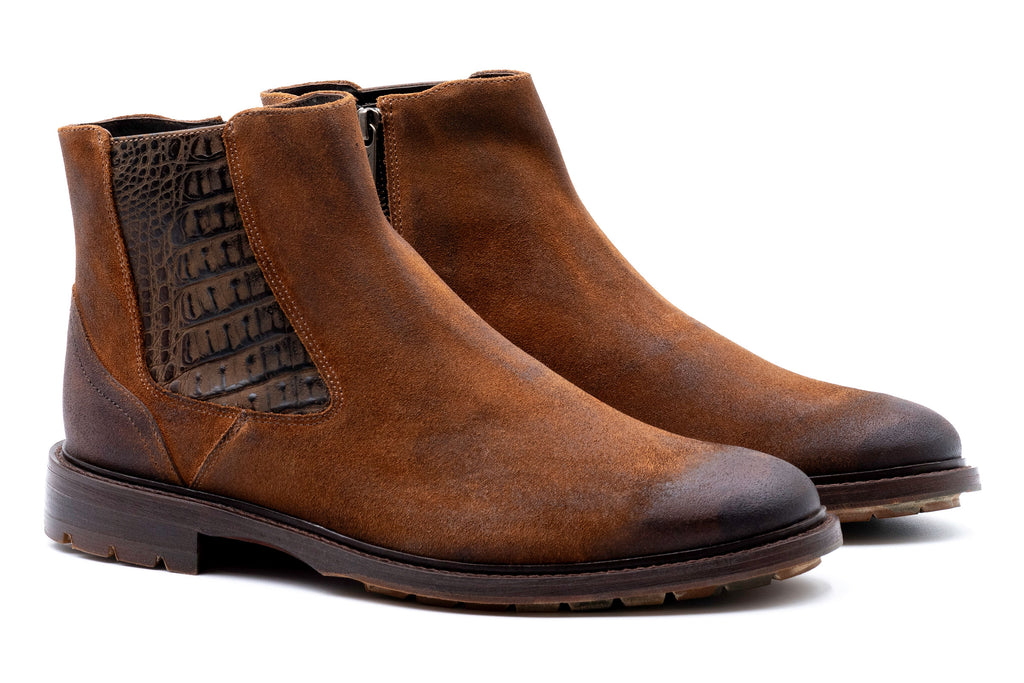 The McKinley Chelsea Boot by Martin Dingman offers a perfect blend of style and comfort. Designed with water-repellent suede, these boots ensure durability and a sleek appearance. Featuring an inside zipper, they provide easy on and off access.