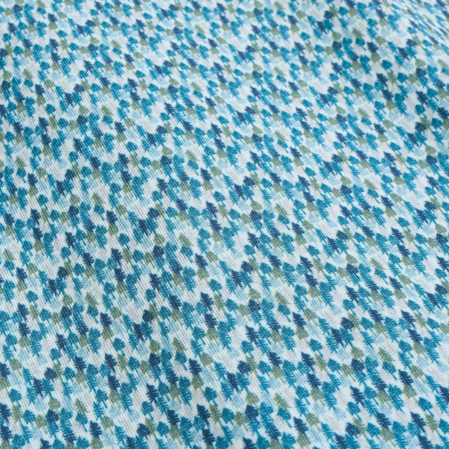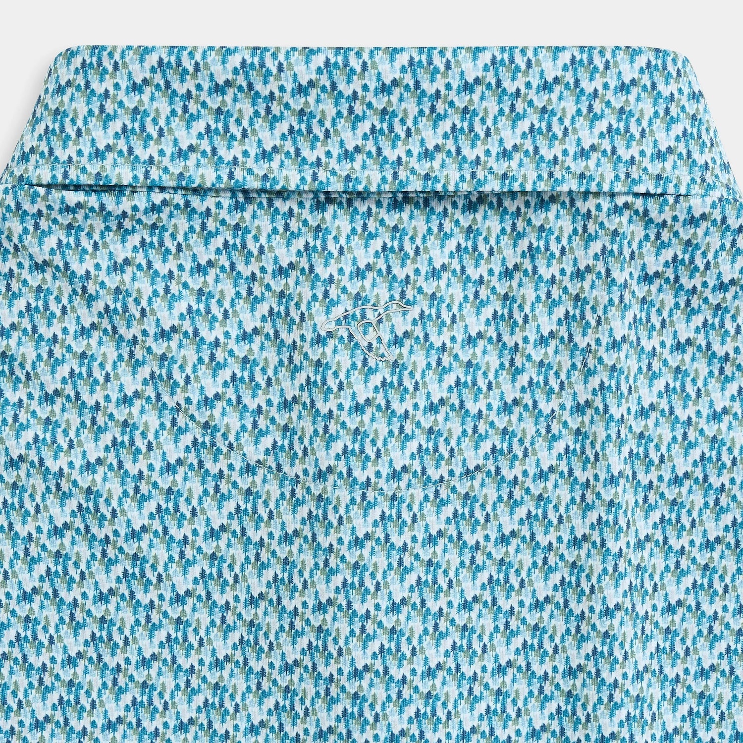 The Genteal F25 Ponderosa Pine Printed Performance Polo in Ashen Green is designed for comfort and style, inspired by the beauty of mountain landscapes. This polo is crafted from signature moisture-wicking performance fabric, ensuring lightweight comfort, stretch, and breathability for all-day wear. Perfect for transitioning from the golf course to the clubhouse, it features a collage of finely detailed pine trees in blue and green tones.