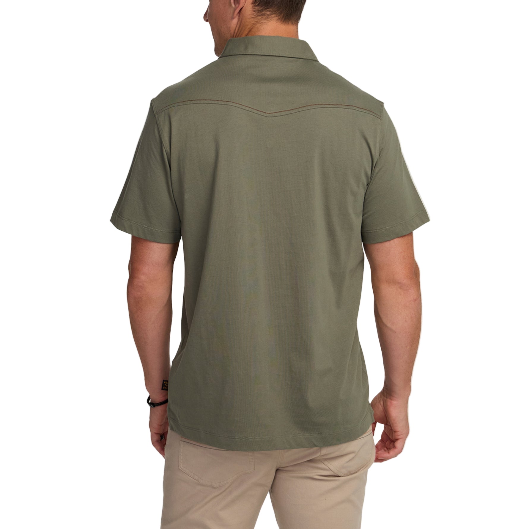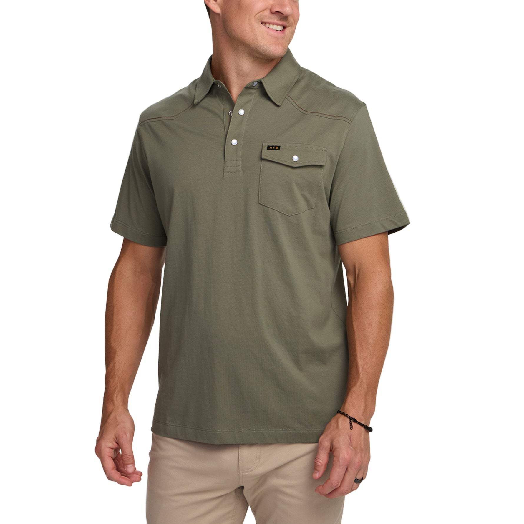 The Ranchero Polo by Howler Brothers seamlessly blends style and comfort, making an impressive addition to your wardrobe. This polo shirt is made from 100% super-soft cotton, offering a luxurious feel against the skin. It features a unique single-button pocket front design complemented by western yokes, providing a subtle yet distinctive look.
