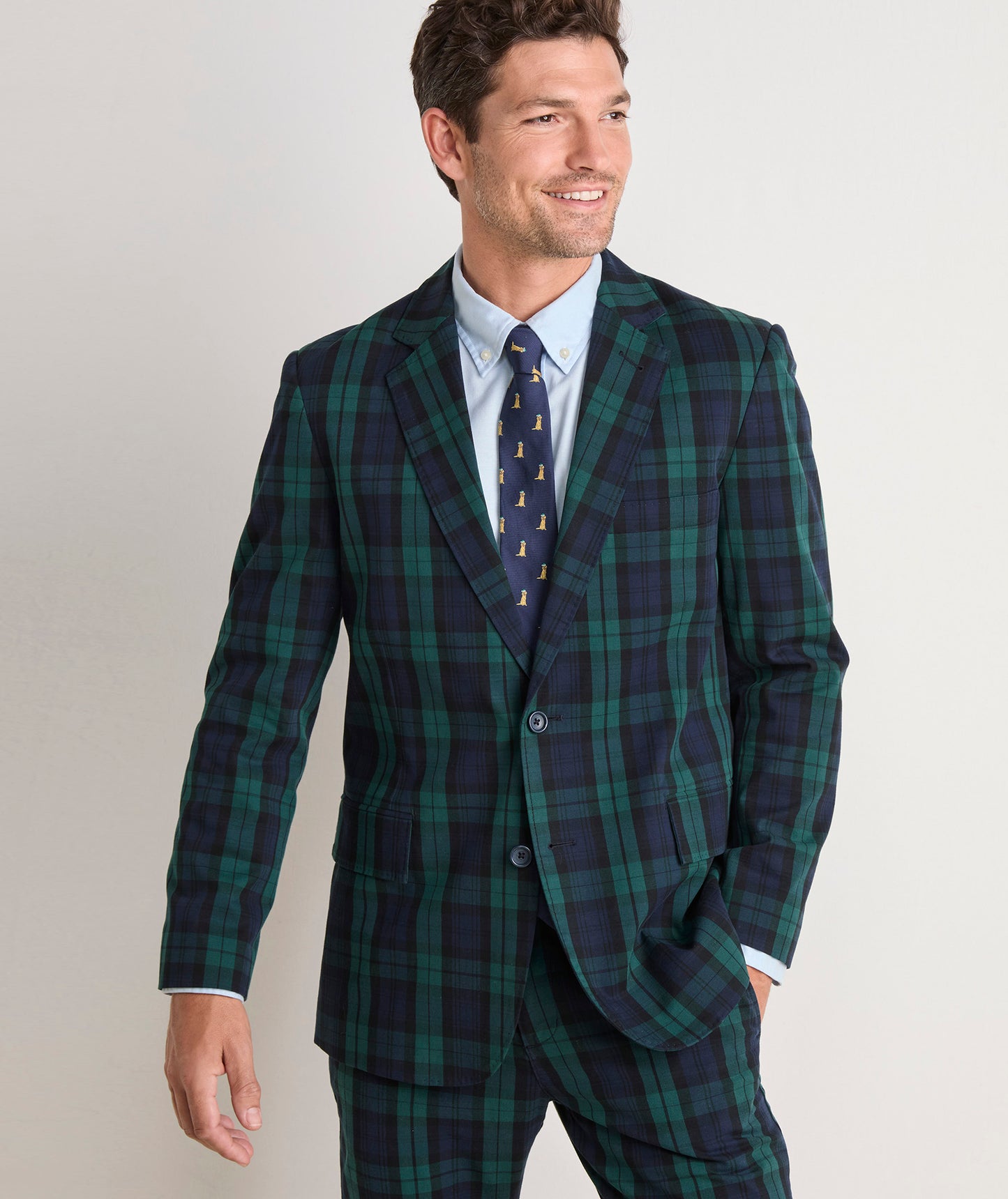 Whether you want to wear a little Blackwatch or go full-blown head-to-toe tartan with the matching pants, this soft, stretch cotton blazer will make you be the best dressed guy at any holiday party.