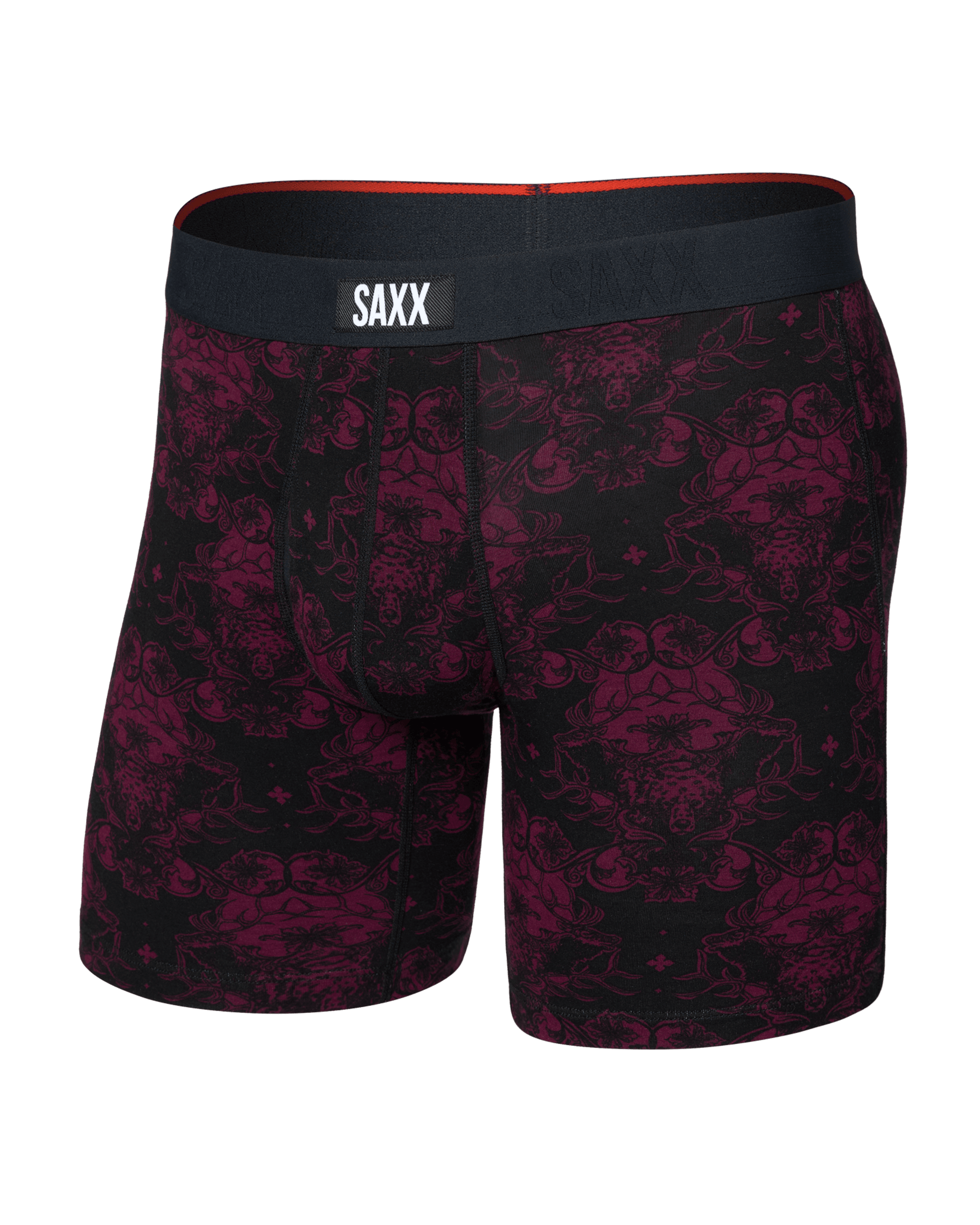 Discover unparalleled comfort with the Vibe Xtra Soft Comfort Boxer Brief in Bear Brocade-Maroon from SAXX. This modern take on the traditional boxer provides a slightly roomier fit around the butt and thighs while maintaining a secure, form-fitting feel. Crafted from LENZING™ ECOVERO™ certified eco-responsible viscose, it offers a super-soft touch and natural odor resistance.