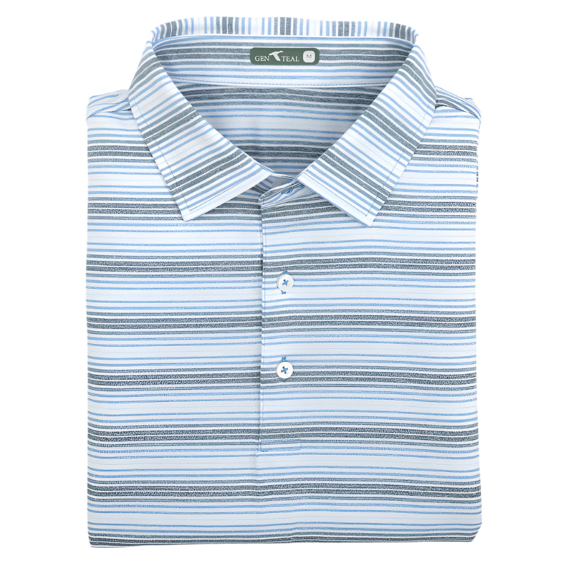 The Walker Performance Polo blends classic style with modern performance, featuring heathered stripes for a refined yet laid-back look. With just the right amount of stretch and our signature GenTeal duck logo at the center back neck, this polo is built for effortless style and all-day wear. Includes a cutaway collar for a modern look without the collar curl.