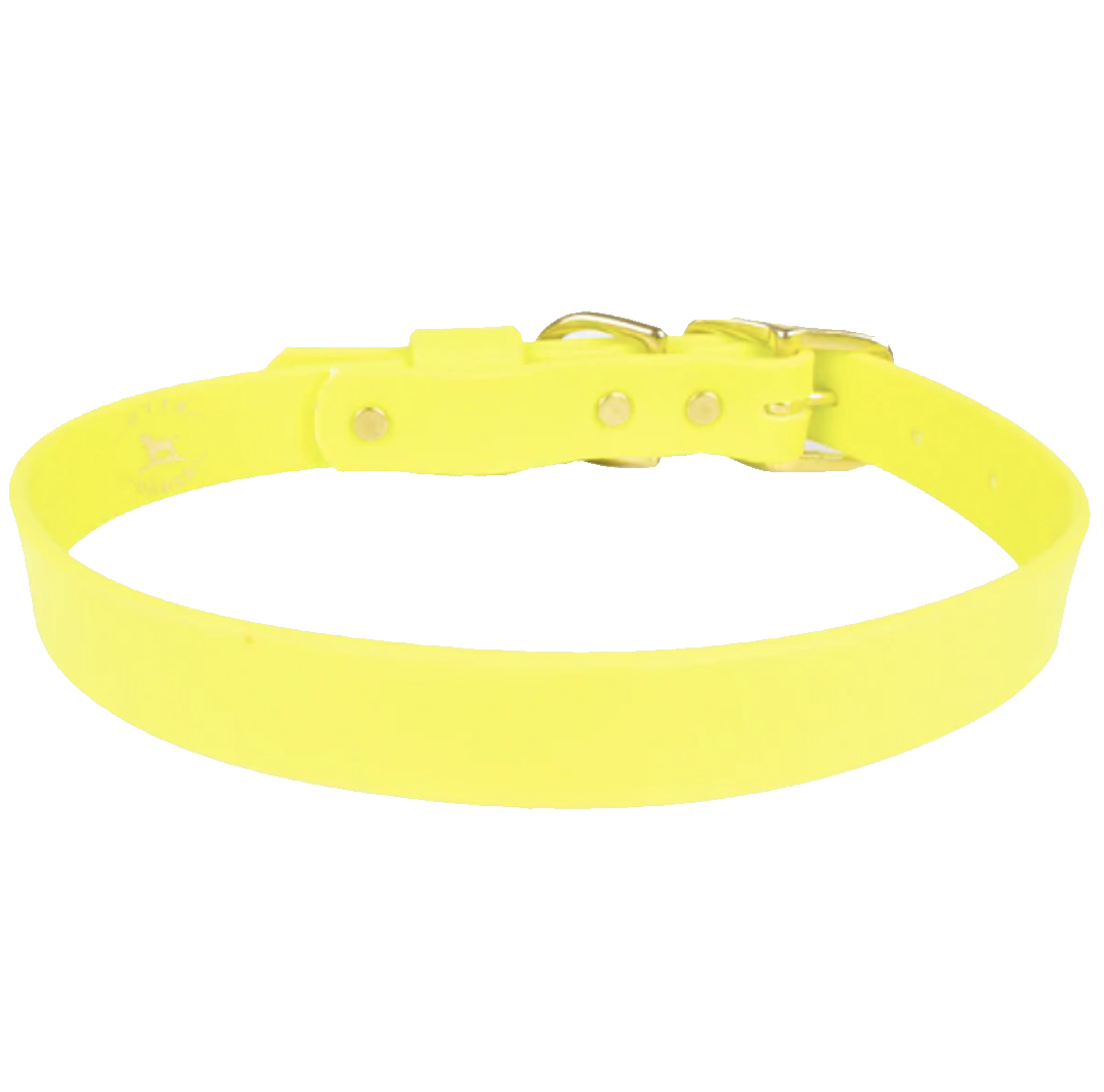 Know your dog's location in the field better with The Water Dog collar. Constructed from our durable "1" Ripstop Nylon interior webbing ("Dura-Hide") that is encased in a polyurethane waterproof outer coating, and finished off with solid brass hardware, and adorned with our signature shell adornment, this collar was was designed to withstand even the harshest conditions. Whether it's a day in the field pursuing upland game, a frosty December morning hunting in the flooded timber, or just a walk around town we're confident both you and your four-legged friend will love this new collar. 100% MADE IN USA.