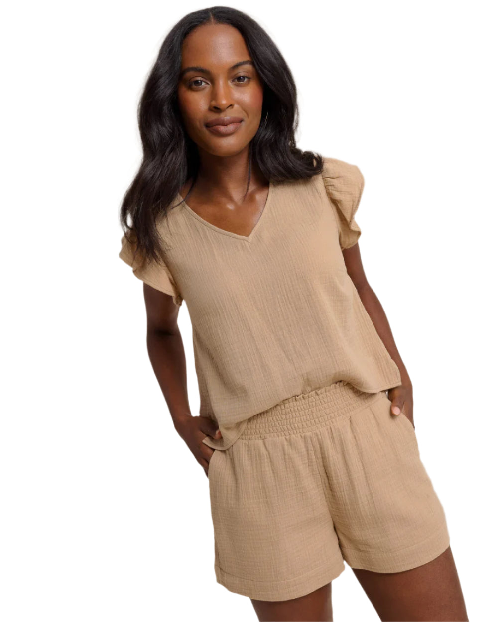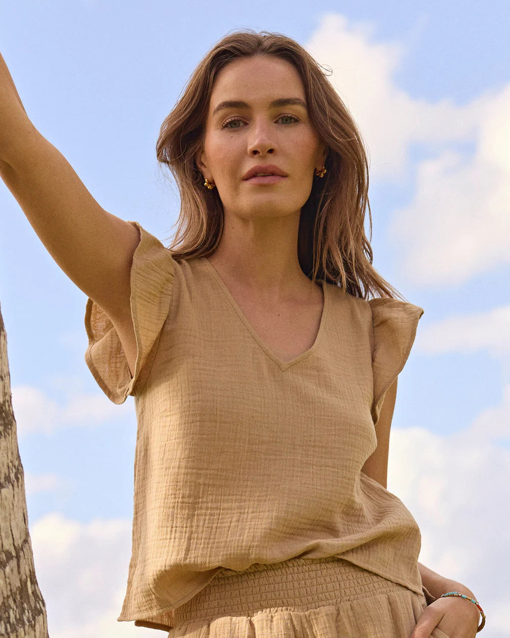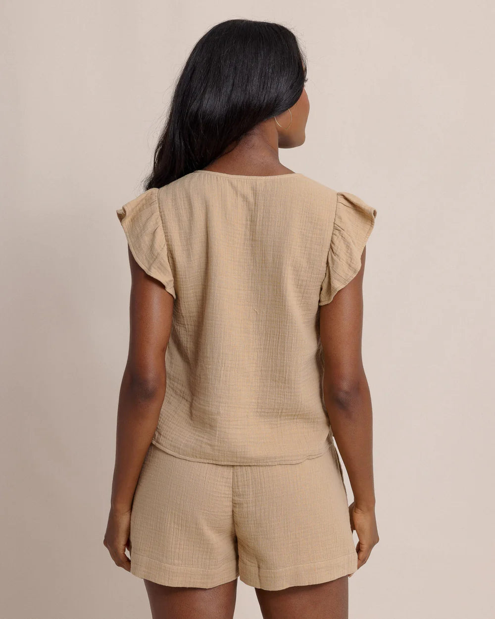 Welcome the upcoming season with a touch of elegance and charm in the Southern Tide Arden Ruffle Sleeve Top. The delicate ruffle sleeves add a flirty, feminine touch that enhances the classic silhouette, while the relaxed fit ensures you move with ease and grace.