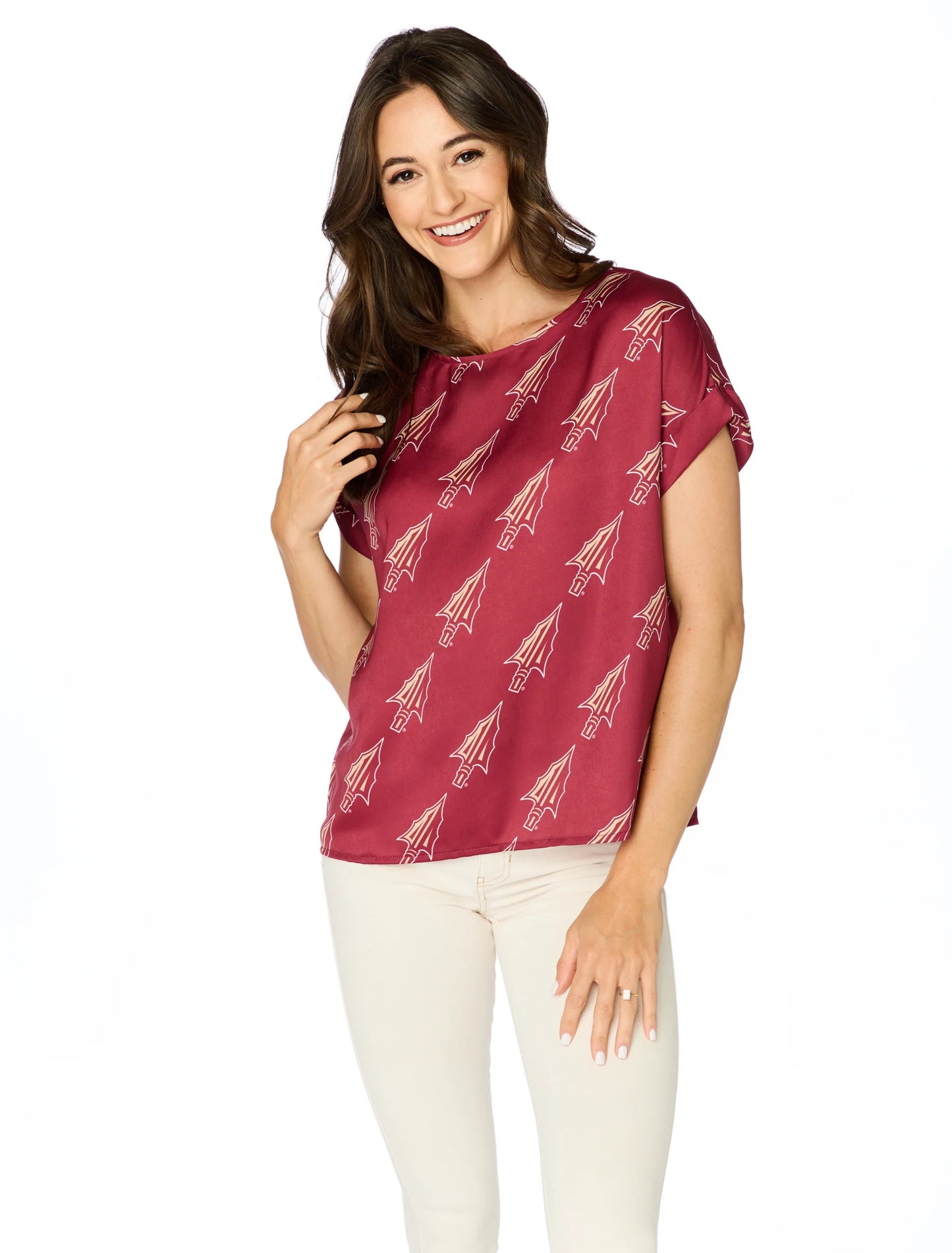 Ws FSU Spear Rolled Cuff Blouse Garnet