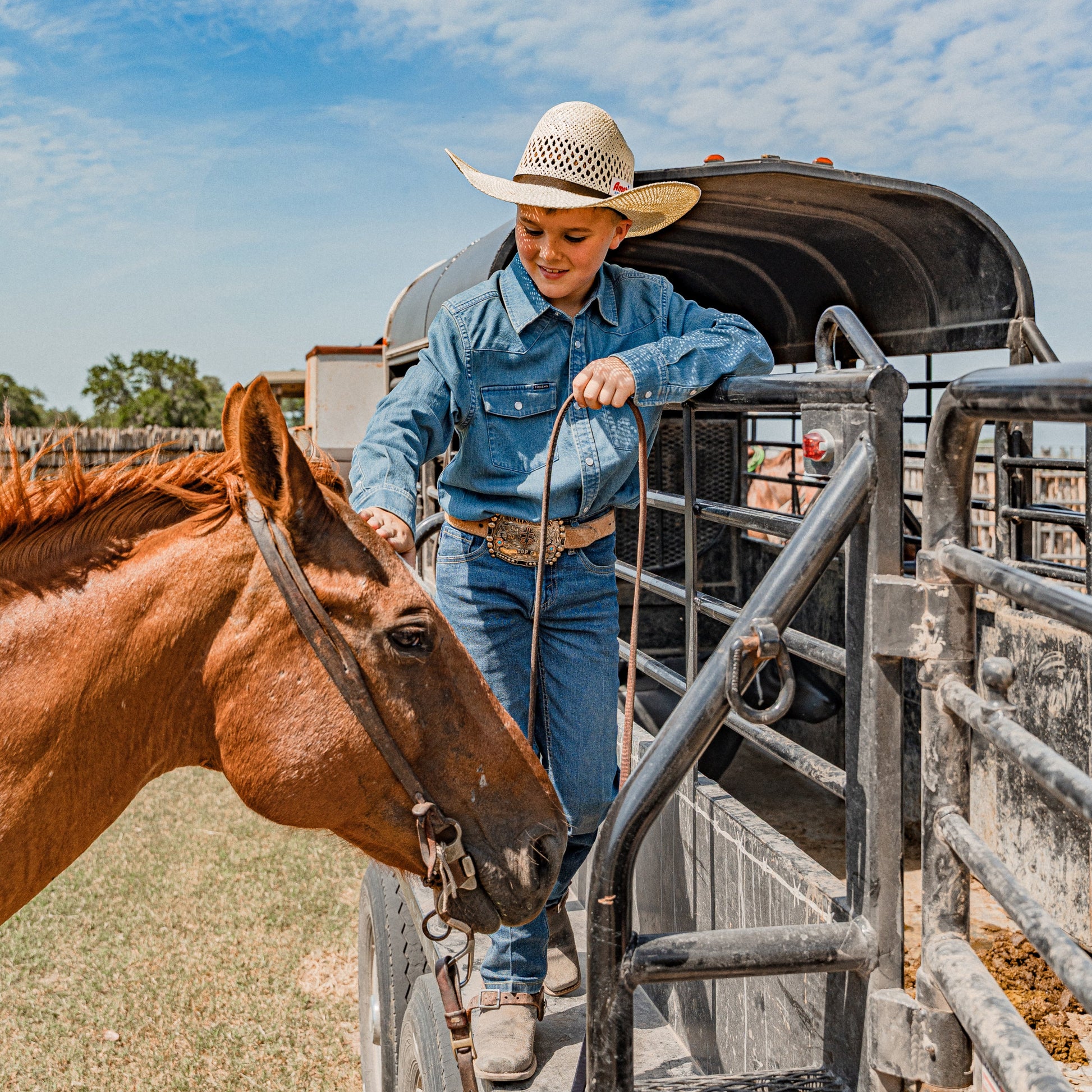 - Features subtle western styling with pearl snaps and reinforced stitching.
